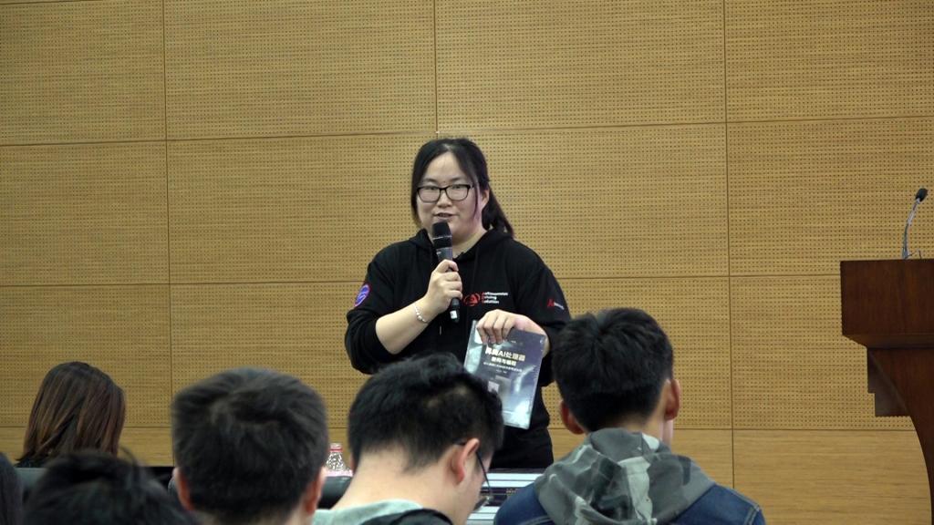 讲座中,王晓雷总监从智能加速芯片的是什么和为什么两个问题出发,在与学生的互动中生动形象的讲解了达芬奇架构、华为AI芯片战略、大规模人工智能训练集群等众多内容。讲座现场座无虚席,学生积极回答问题,气氛活跃。