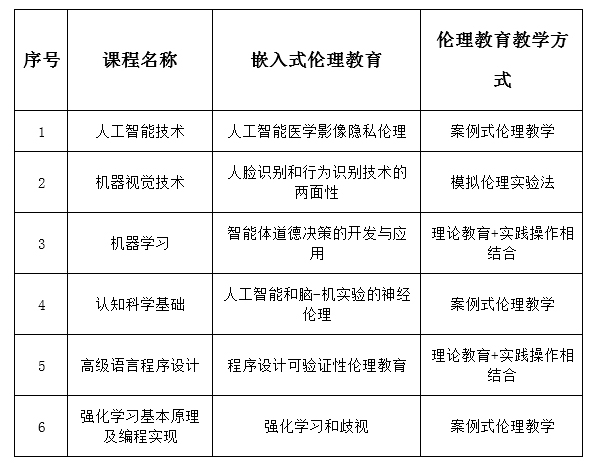 表格:Betway·必威(西汉姆联)人工智能类课程嵌入式伦理教育