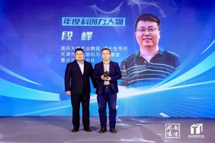 今年5月4日,由段峰团队牵头的全球首例非人灵长类动物介入式脑机接口试验在北京获得成功,该试验在猴脑内实现了介入式脑机接口脑控机械臂,对推动脑科学领域研究具有重要意义,标志着我国脑机接口技术跻身国际领先行列。此次试验与中国人民解放军总医院(301医院)等单位联合完成,实现了介入式脑电信号从被动采集到主动控制的技术飞跃,突破了血管内脑电信号采集、介入式脑电信号识别等核心技术。南方周末颁奖词称其“开创了第三种脑机接口新范式,为人类未来谋划一片新图景”。