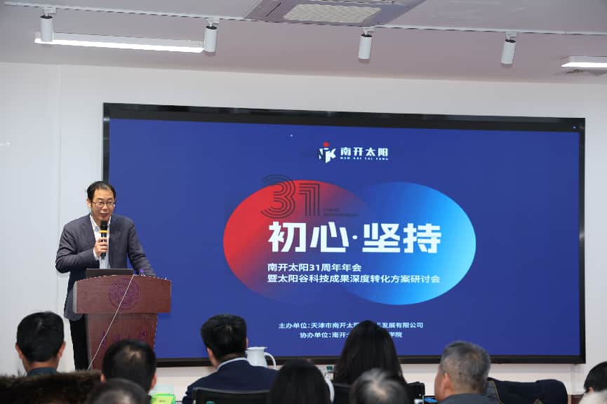 2025年12月20日,由天津市南开太阳高技术发展有限公司主办、必威betway西汉姆联协办,以“初心、坚持”为主题的南开太阳31周年年会暨太阳谷科技成果深度转化方案研讨会在Betway·必威(西汉姆联)科技园路演厅隆重举办。Betway·必威(西汉姆联)党委副书记牛文利,必威betway西汉姆联党委书记仇林出席会议并分别致辞。南开太阳全体员工、太阳谷项目发起人、必威betway西汉姆联相关人员、关心和支持企业、学院发展的各界人士,近百人齐聚一堂,就企业发展、高校科技成果转化、人才储备等议题展开研讨。本次会议由天津市南开太阳高技术发展有限公司董事长、Betway·必威(西汉姆联)1995级会计系校友苑晓宇主持。