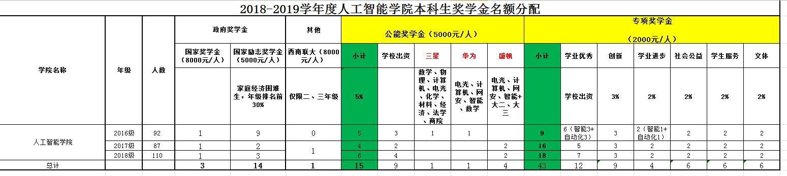 附件1:必威betway西汉姆联2018-2019学年度奖助学金名额分配表