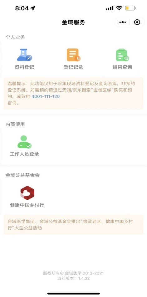 3.核酸检测结果可登录“金域服务”公众号进行查询,结果会在24小时内出具。