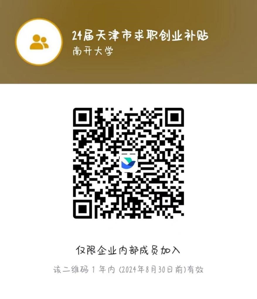 请申请2024届天津市求职创业补贴的同学扫码加入飞书群,今后学校就业指导中心将对申请该补贴的同学进行就业帮扶。