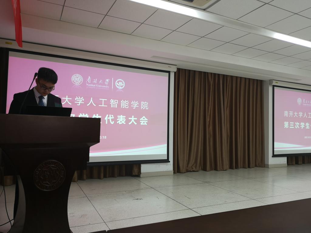 大会开始后,主持人首先介绍了本次学生代表大会的会议流程与选举办法,本次大会应到123人,实到97人,超过应到人数的2/3,符合大会章程,会议有效。在庄重严肃的气氛中,学院学生会秘书长、学院团委霍菲老师首先对大会致辞,她表示学生是学校的主人,学代会是学生参与学校发展建设的一项重要机制。南开刚刚迎来建校102周年,在新百年的起点上,希望代表们充分履职尽责,以主人翁的姿态参与到南开新百年的征程中,积极建言献策,贡献青春智慧和力量。随后,按照大会流程,代表们对学校第二十八次学代会代表进行投票选举。期间,学院第三届学生会主席苏紫涛同学对学生会上一年度工作进行总结报告,并表示学生会主动接受学院各年级同学的监督,围绕“服务同学”这一宗旨更好地开展工作。经过紧张的计票环节,第一轮投票共产生10位校代会代表,参会代表们对10位校代会代表依次进行了信任投票,均获通过。