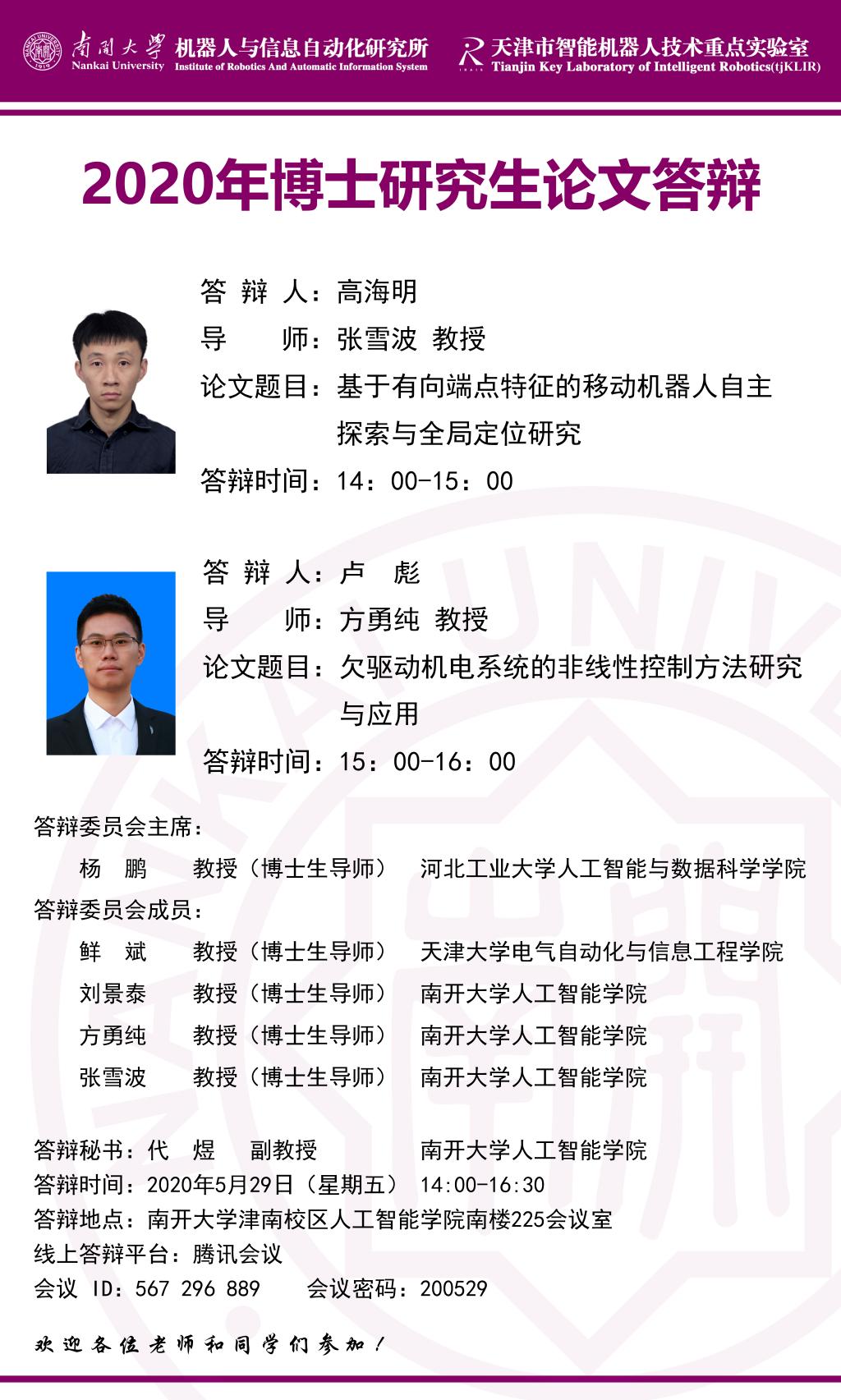 【答辩公告】必威betway西汉姆联博士研究生高海明、卢彪毕业论文答辩公告