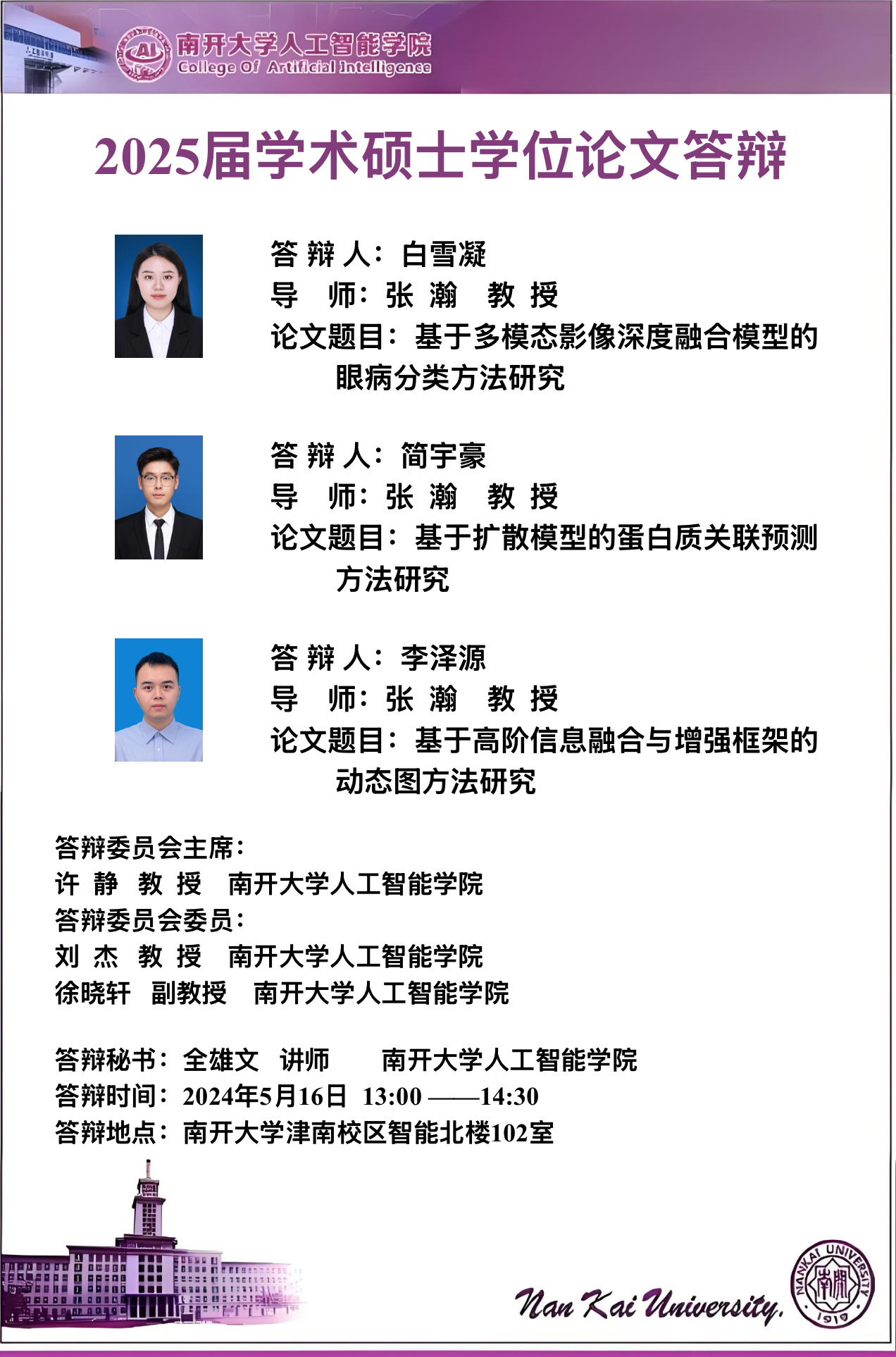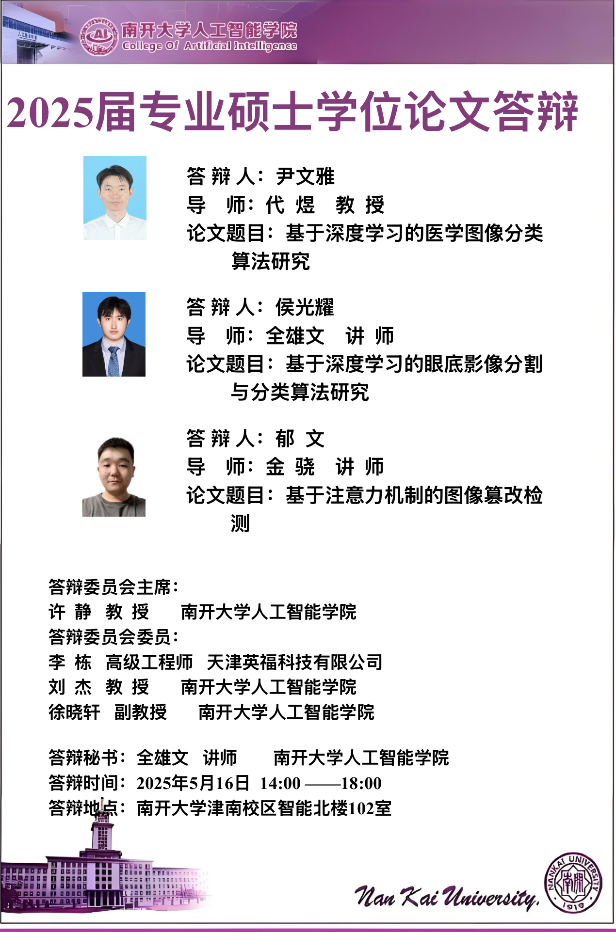 【答辩】必威betway西汉姆联2025届夏季毕业答辩公告----机器智能研究所、智能工程系