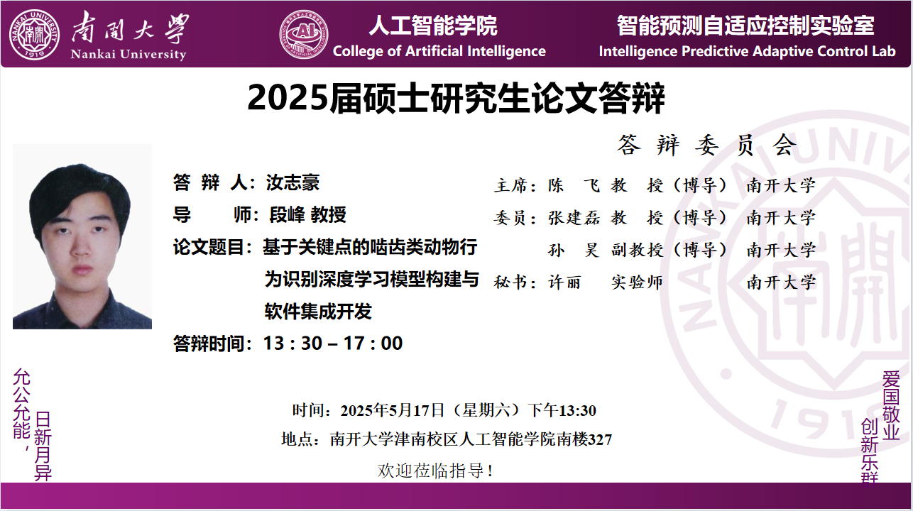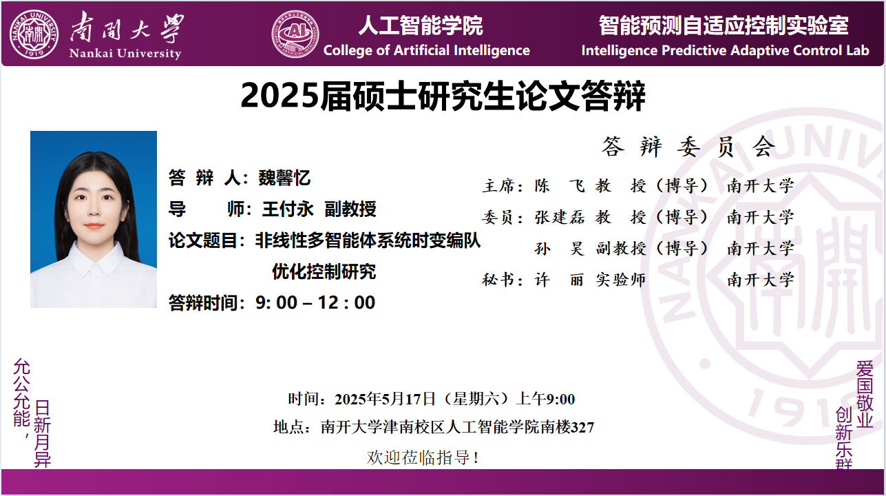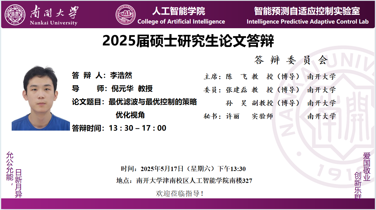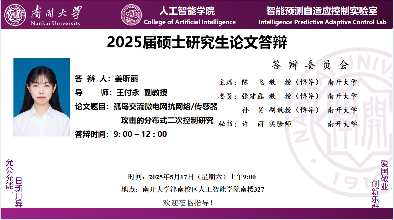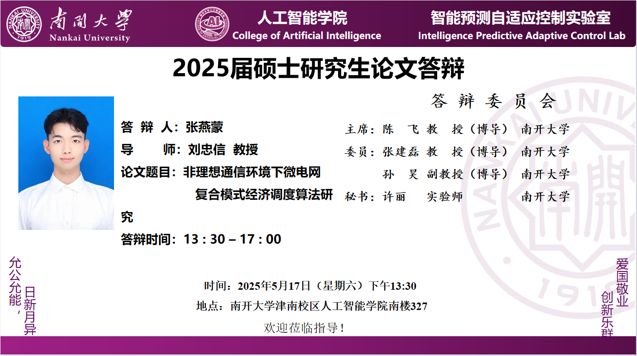 【答辩】必威betway西汉姆联2025届夏季毕业答辩公告----自动化系(学硕)