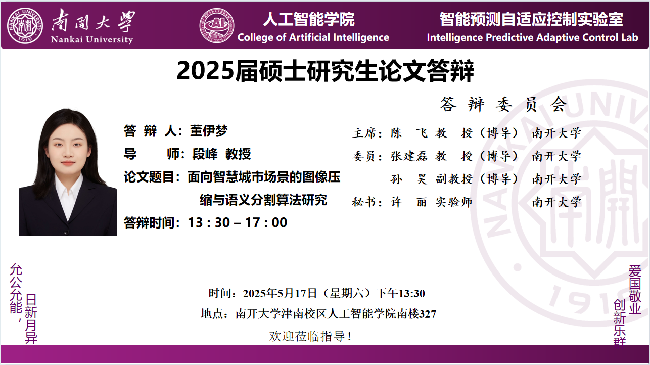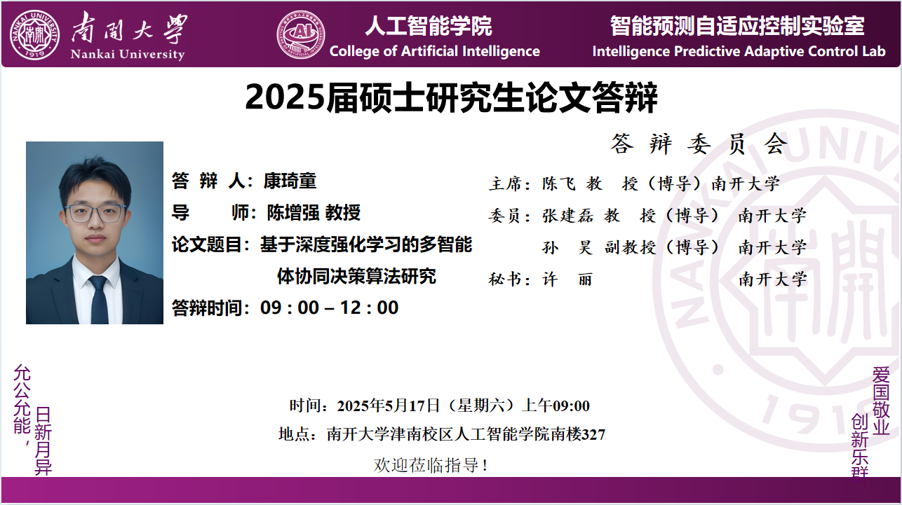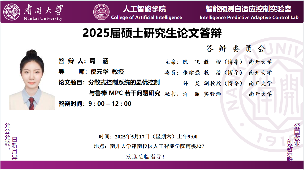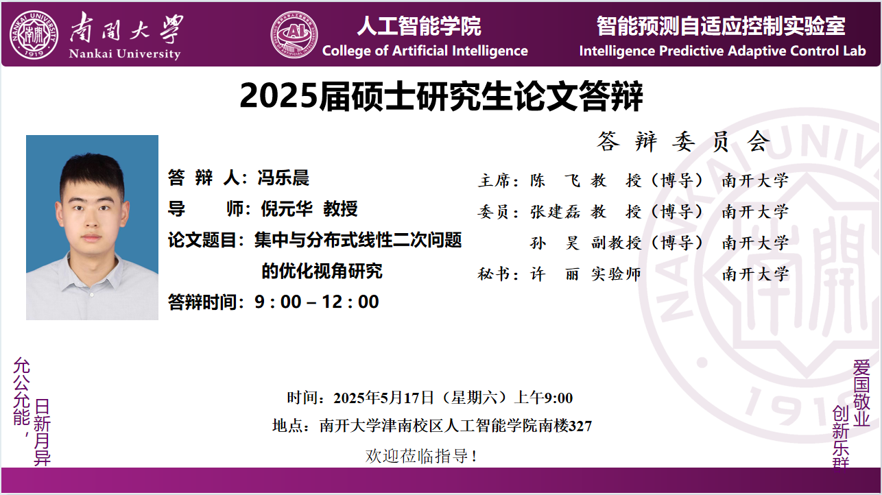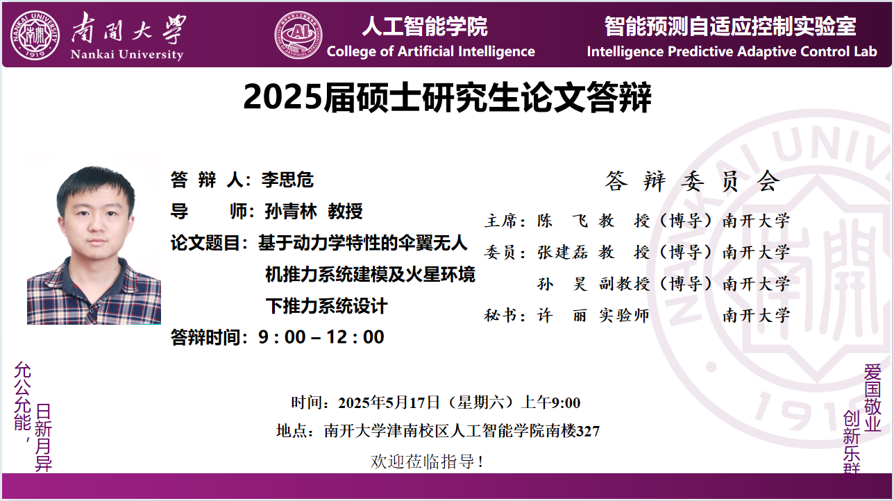【答辩】必威betway西汉姆联2025届夏季毕业答辩公告----自动化系(学硕)