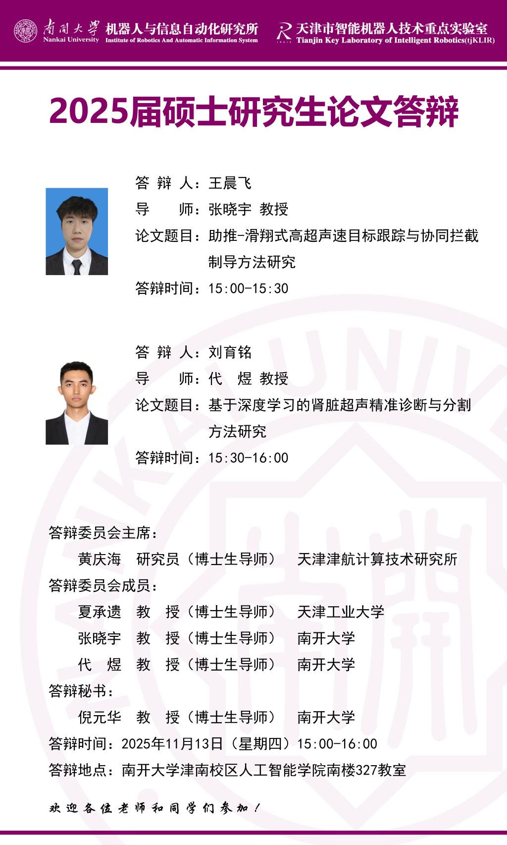 【答辩】必威betway西汉姆联2025届冬季毕业答辩公告---专硕