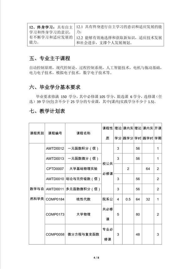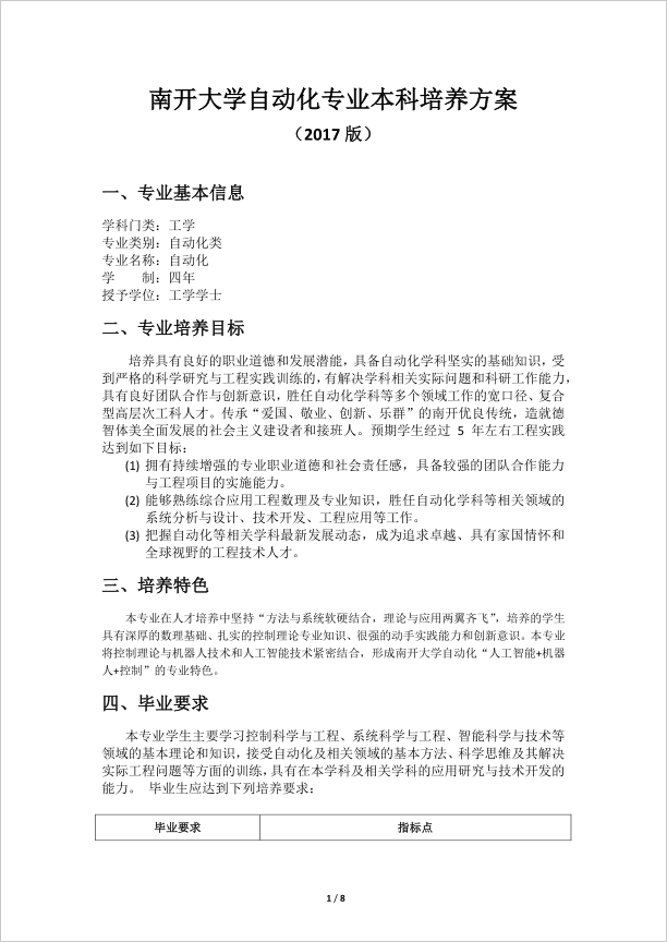 Betway·必威(西汉姆联)自动化专业本科培养方案 (2017版)