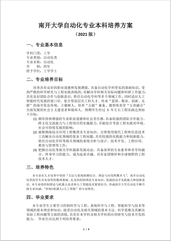 Betway·必威(西汉姆联)自动化专业本科培养方案 (2021版)